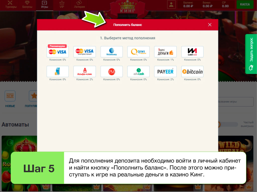 Игровой клуб Слотокинг - как пополнить счет или вывести деньги на карту