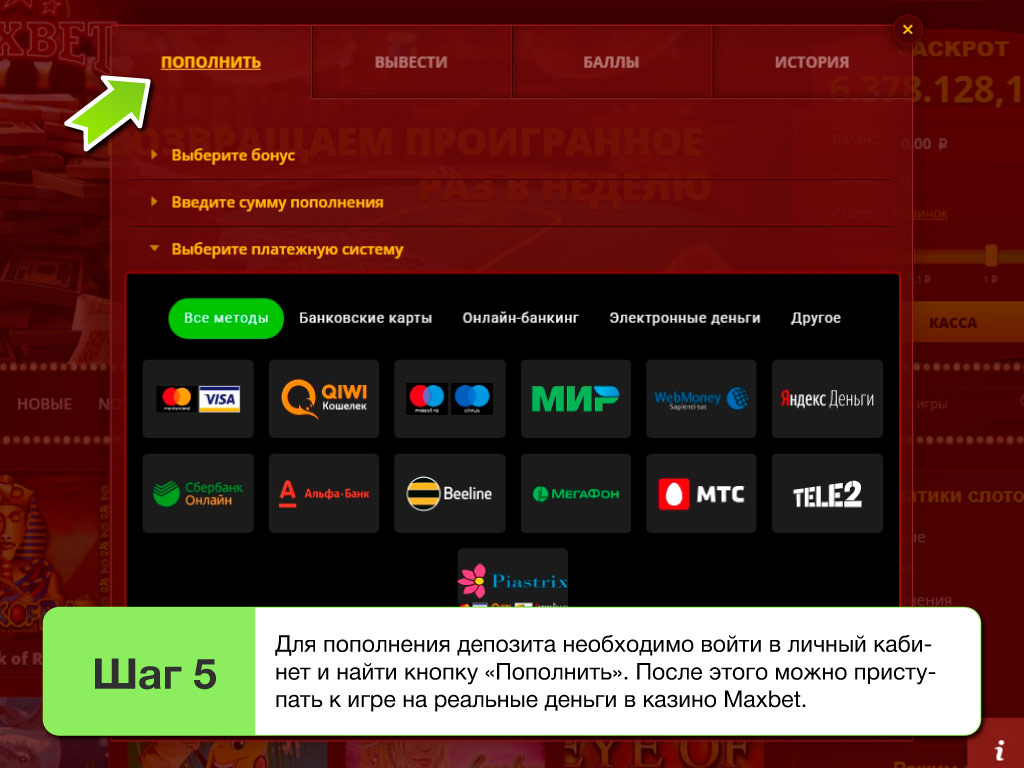 Деньги будут зачислены мгновенно и сразу станут доступны для ставок в любых играх или покупки лотерейных билетов. Комиссия на пополнение не предусмотрена