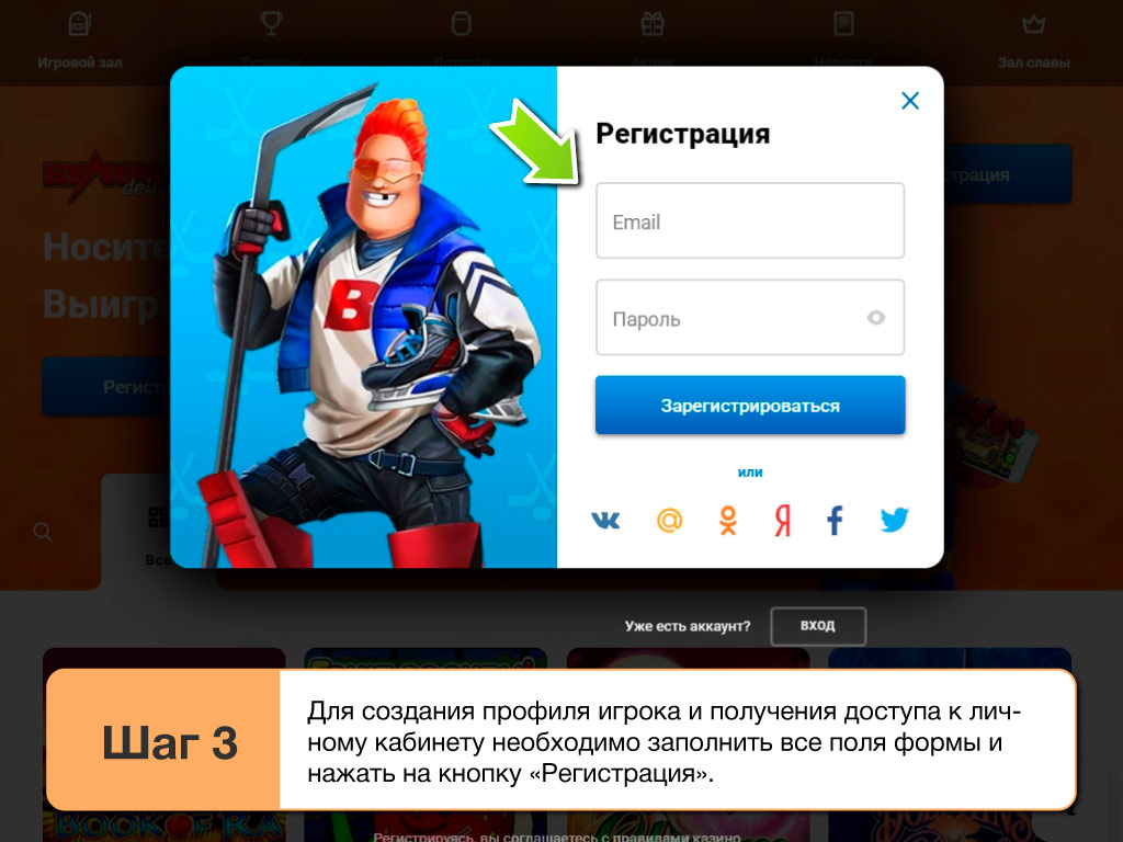 Прохождение регистрация на официальном сайте Vulcandeluxe club
